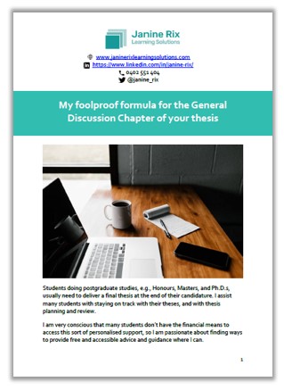 One of the things that consistently seems to cause a lot of stress during thesis writing is the final General Discussion Chapter. This chapter is the culmination of the thesis and students are often feeling a little lost as to what exactly to include here. They are often concerned about it being repetitive and overstating aspects they have already covered in previous chapters: and this is a valid concern.